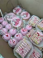 DULCE DE LECHE, STRAWBERRY CHEESECAKE, FERROR ROCHER, BISCOFF, CONFETTI, AND MARBLE.
